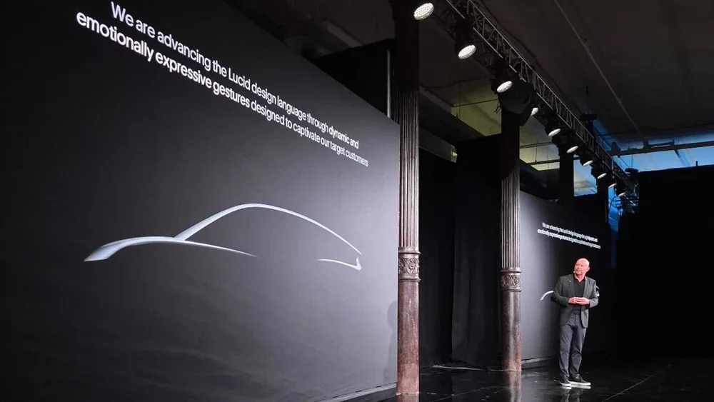 Senior Vice President of Design and Brand, Derek Jenkins, revealed Lucid's three new mid-size EVs.