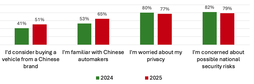 Awareness and Consideration for Chinese Automakers Grow as Privacy and Security Woes Fall